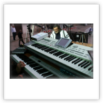 Piano Yamaha, tastiere: Korg, Roland, expander vari |